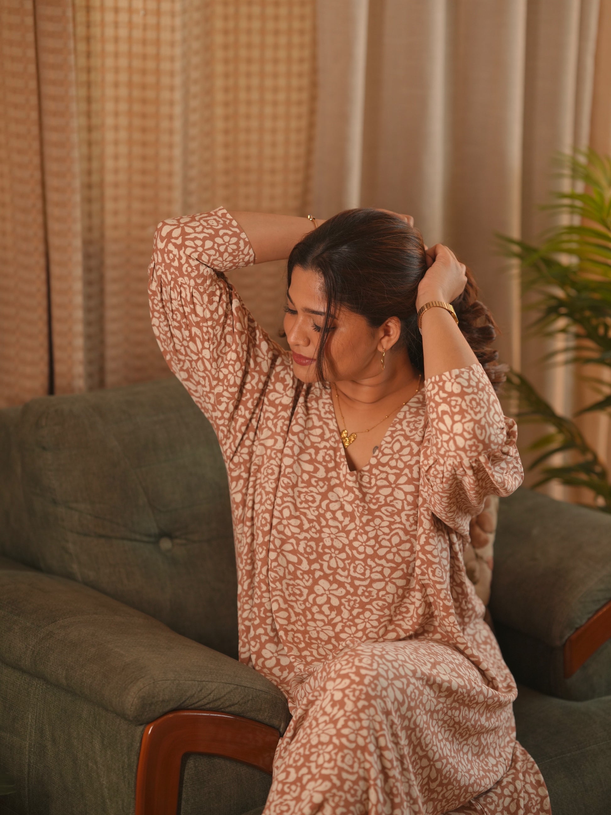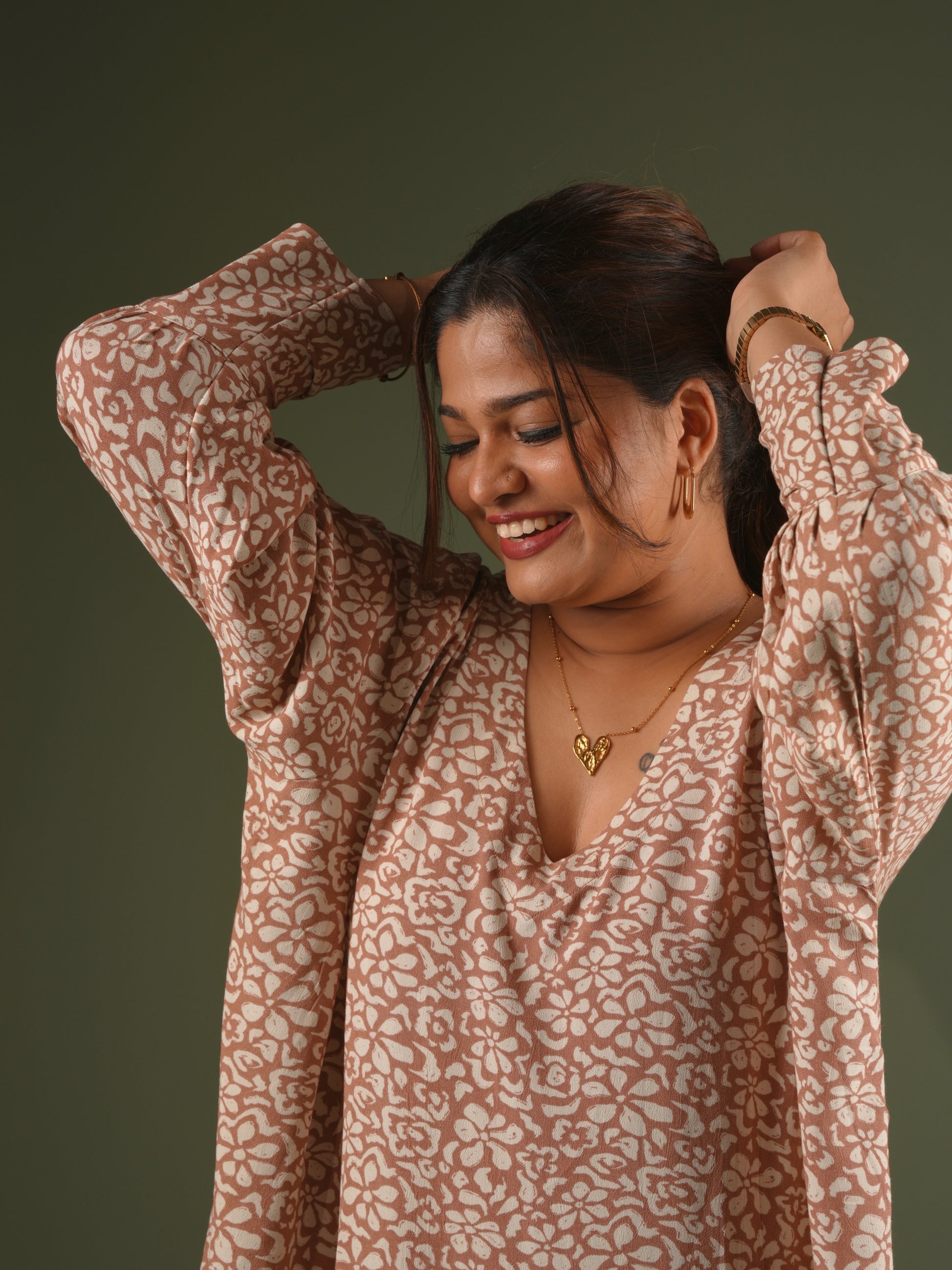 Beige Floral Oversized Dress