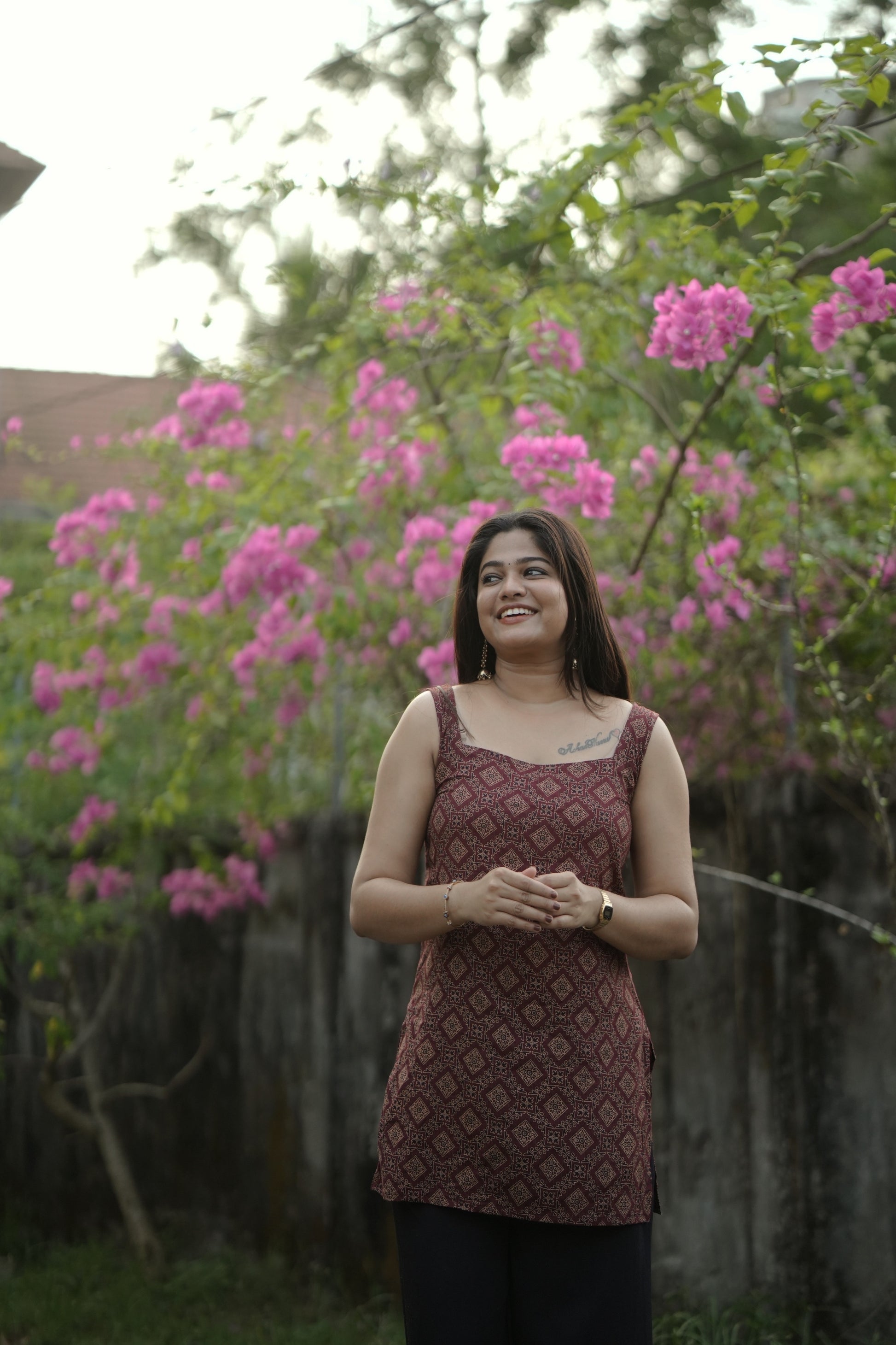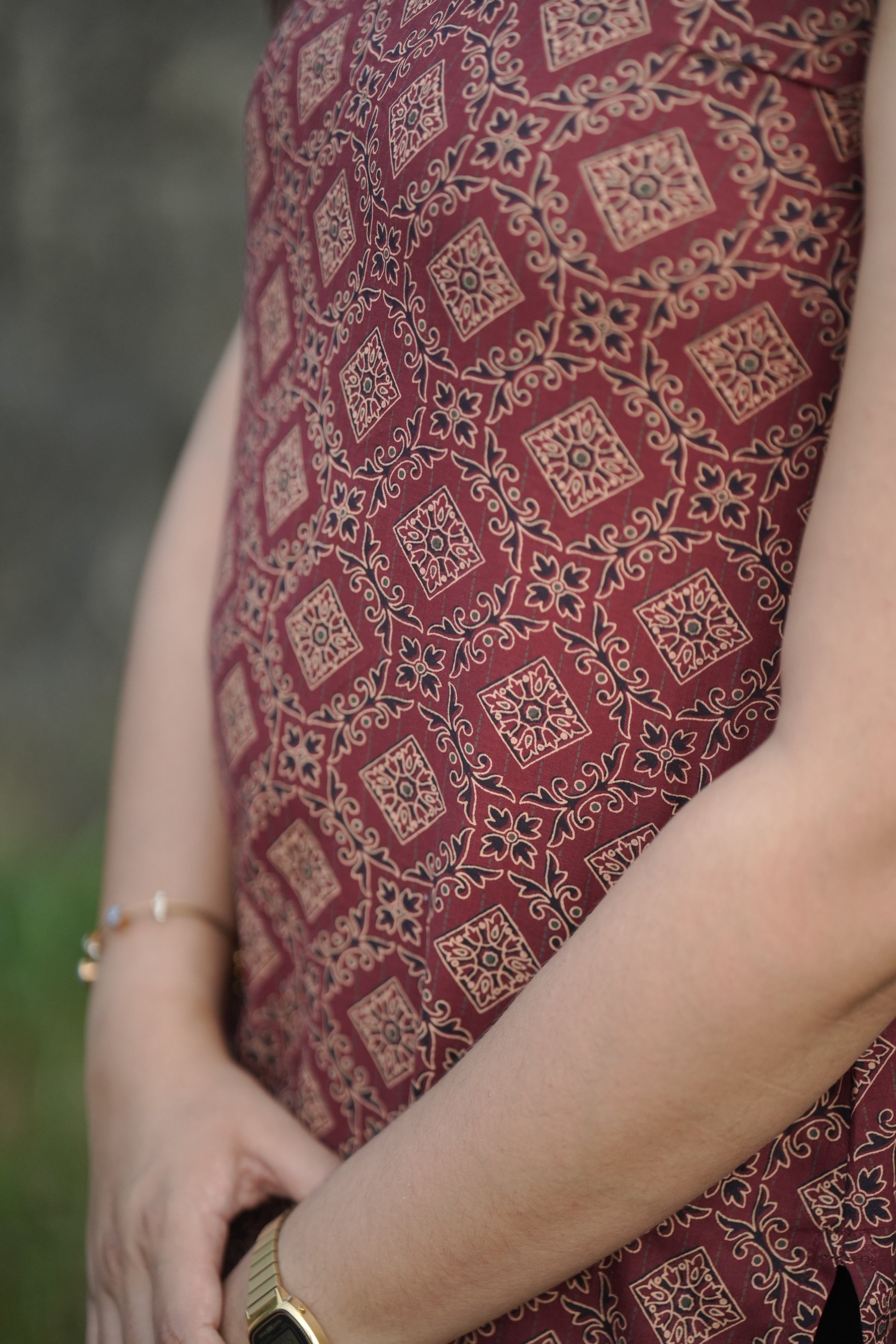 The sleeveless cut and relaxed fit make it perfect for warm summer days, while the elegant ethnic print adds a touch of timeless charm.