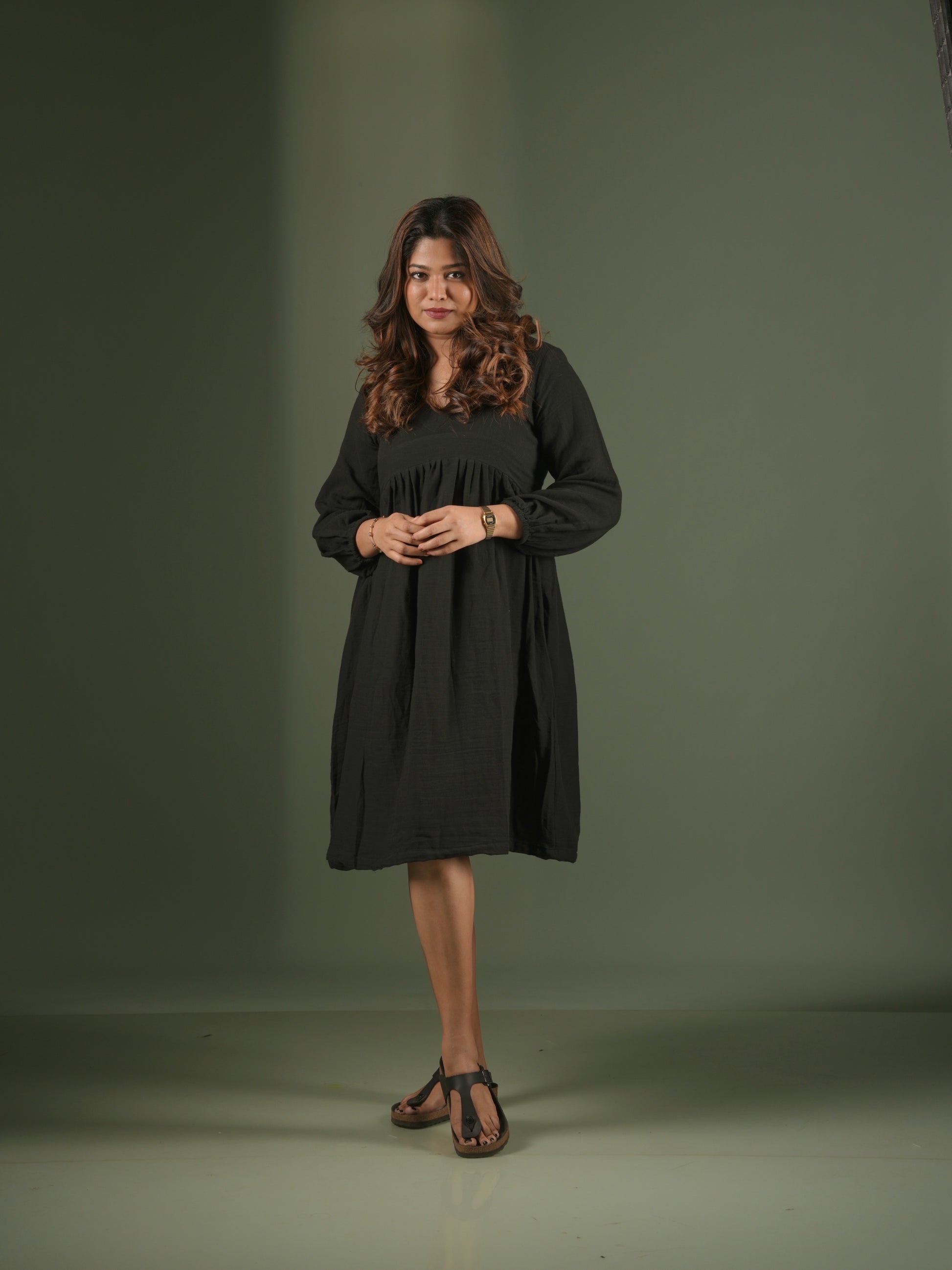 Short black dress.